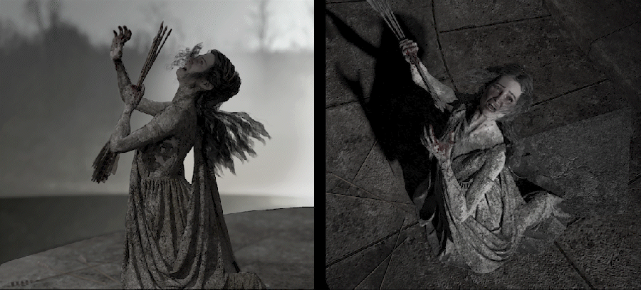 I love how working in 3D enables me to smoothly experiment with compositions and camera angles. Typically, I create a mix of 3D and 2D sketches by blending quick renders with simple over-painting in Photoshop. Then, I share these sketches with the band, allowing them to choose their preferred direction. You will find additional behind-the-scenes content below, which highlights some of the early drafts during the initial exploration:
