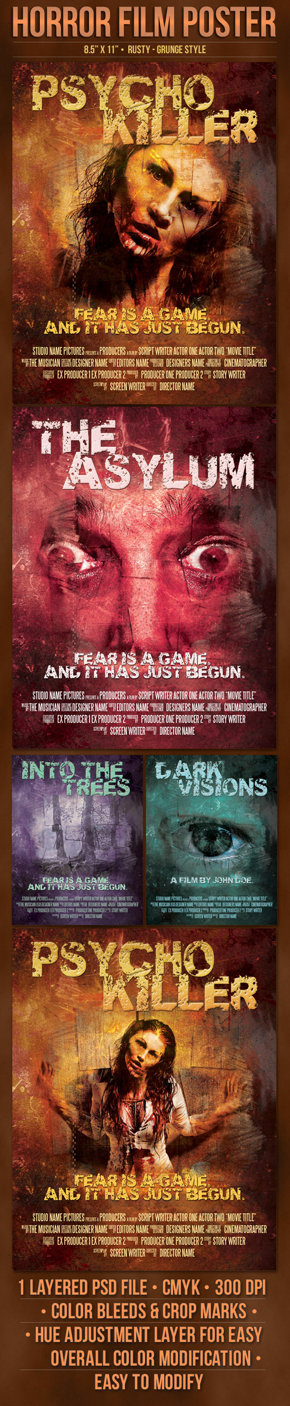 Plantilla de diseño de poster de película de terror. Lista para usar, utiliza tus propias fotos o ilustraciones y consigue un look como el de la muestra al instante.